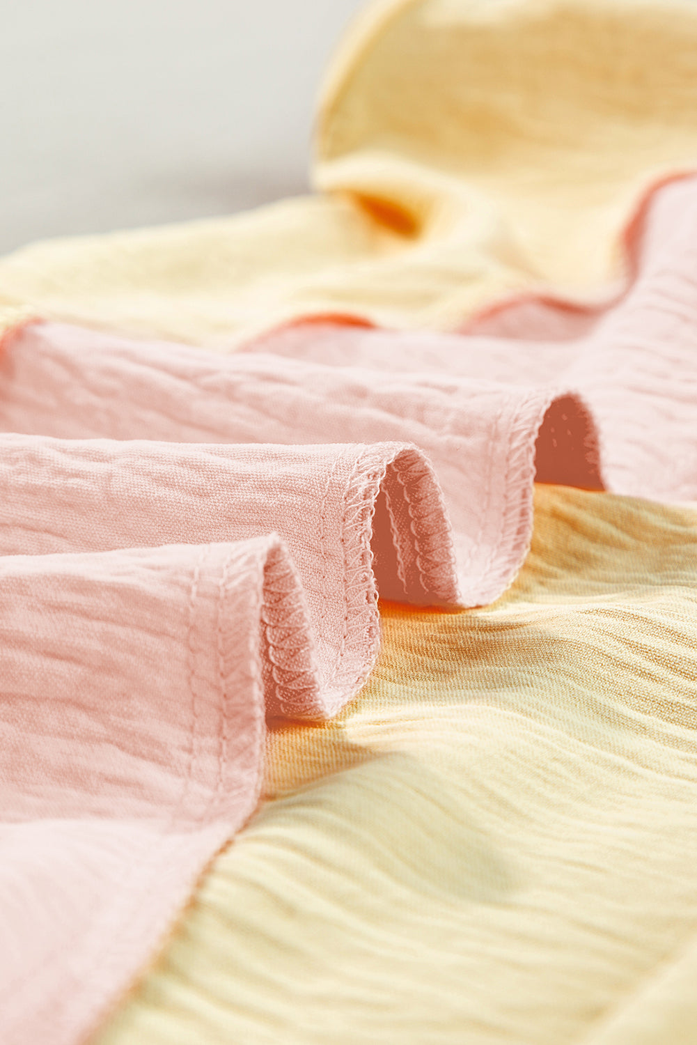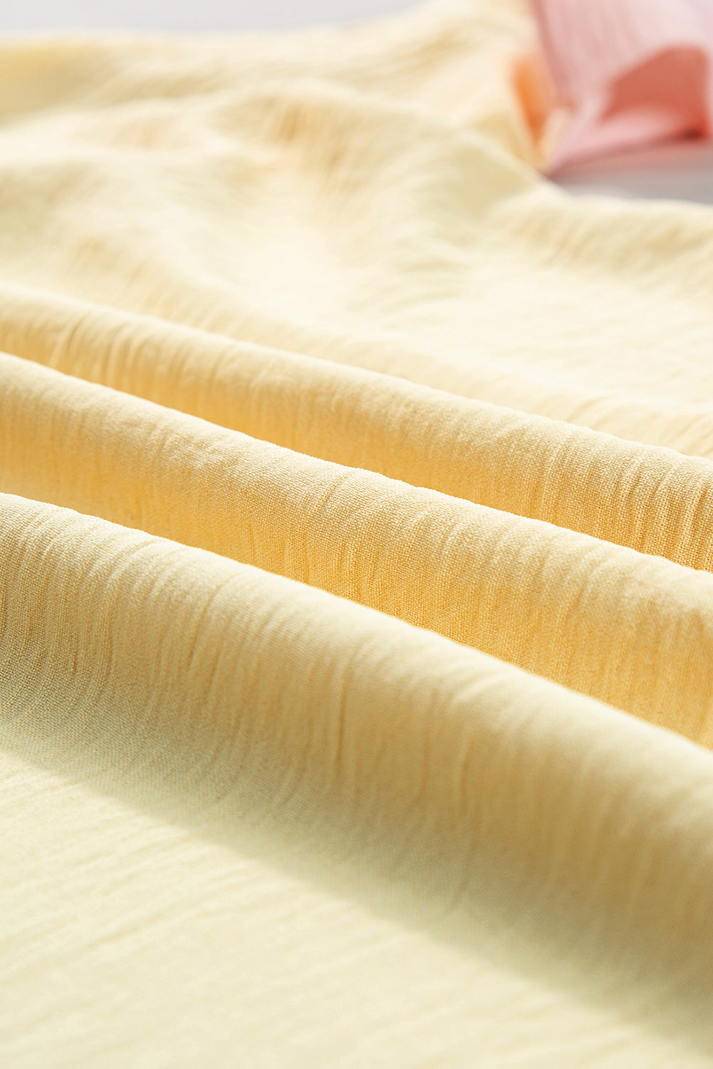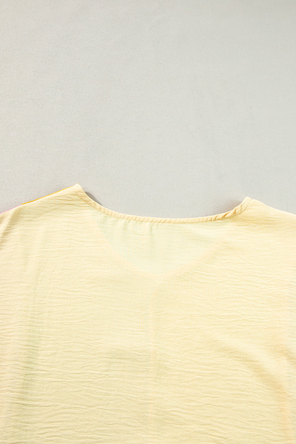 Apricot Crinkled Colorblock Patchwork V Neck T Shirt