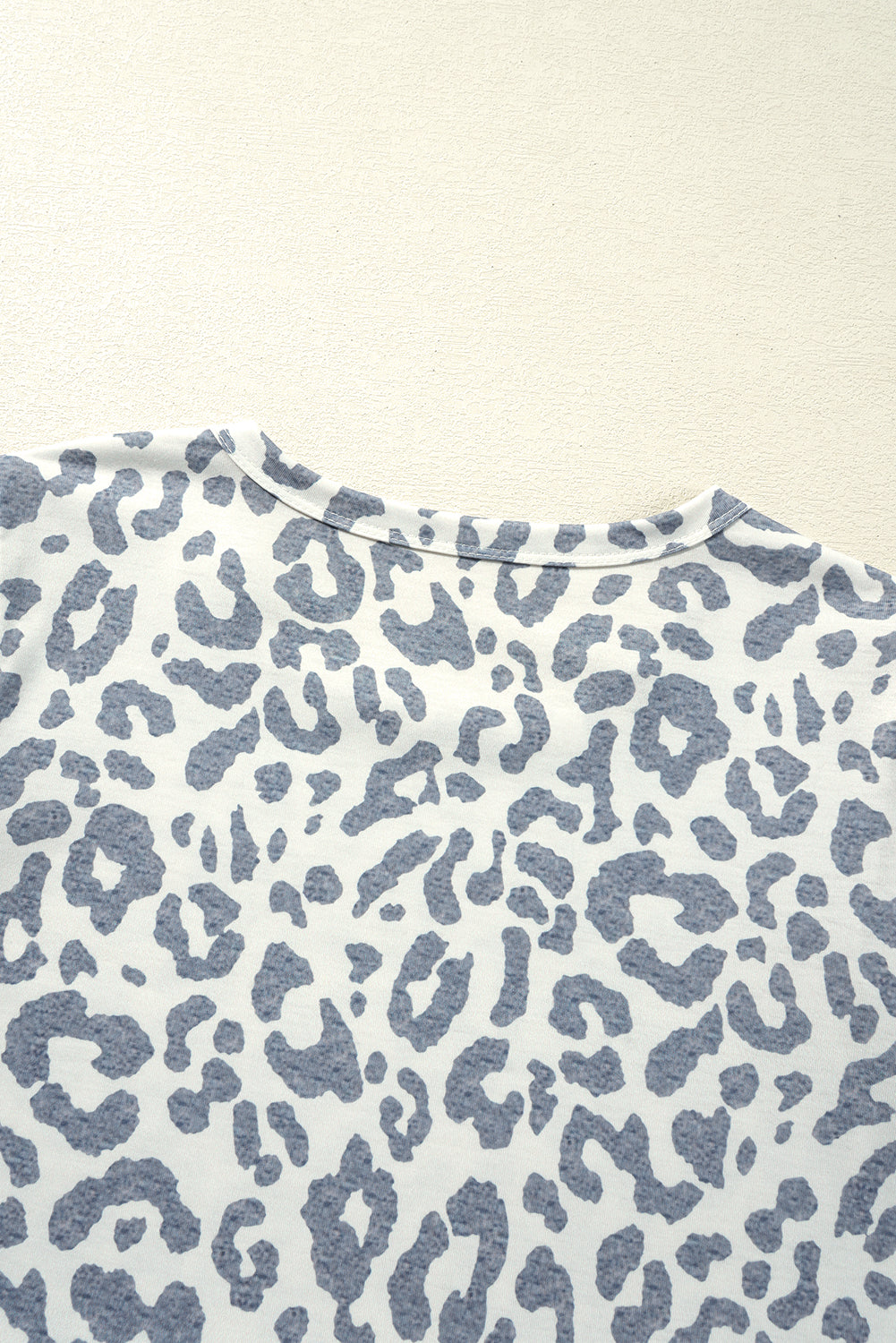 - Trendy t shirt combines the fierce leopard print with charming petal sleeves.