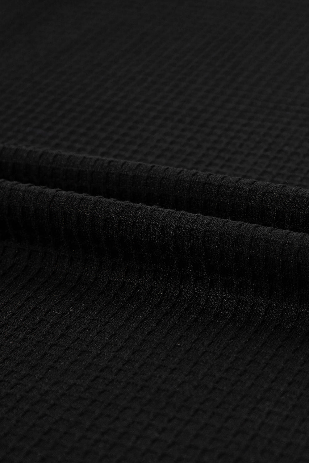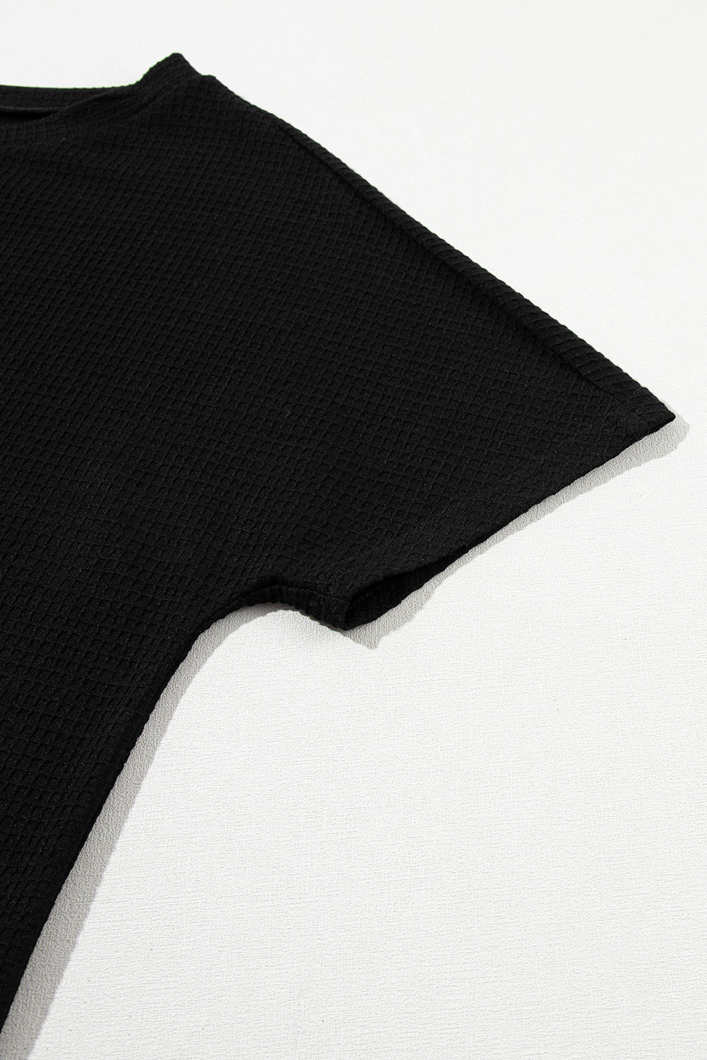 Black Casual Textured Tee and Drawstring Shorts Set