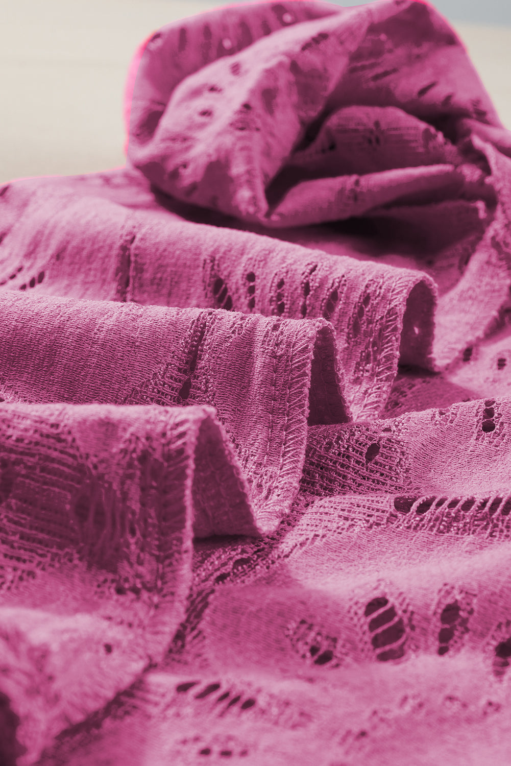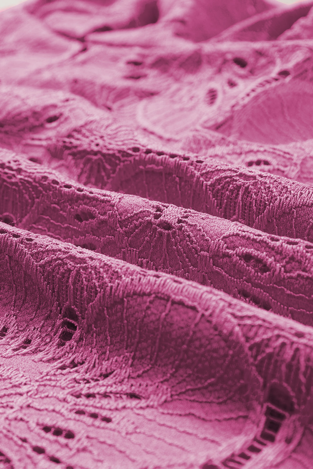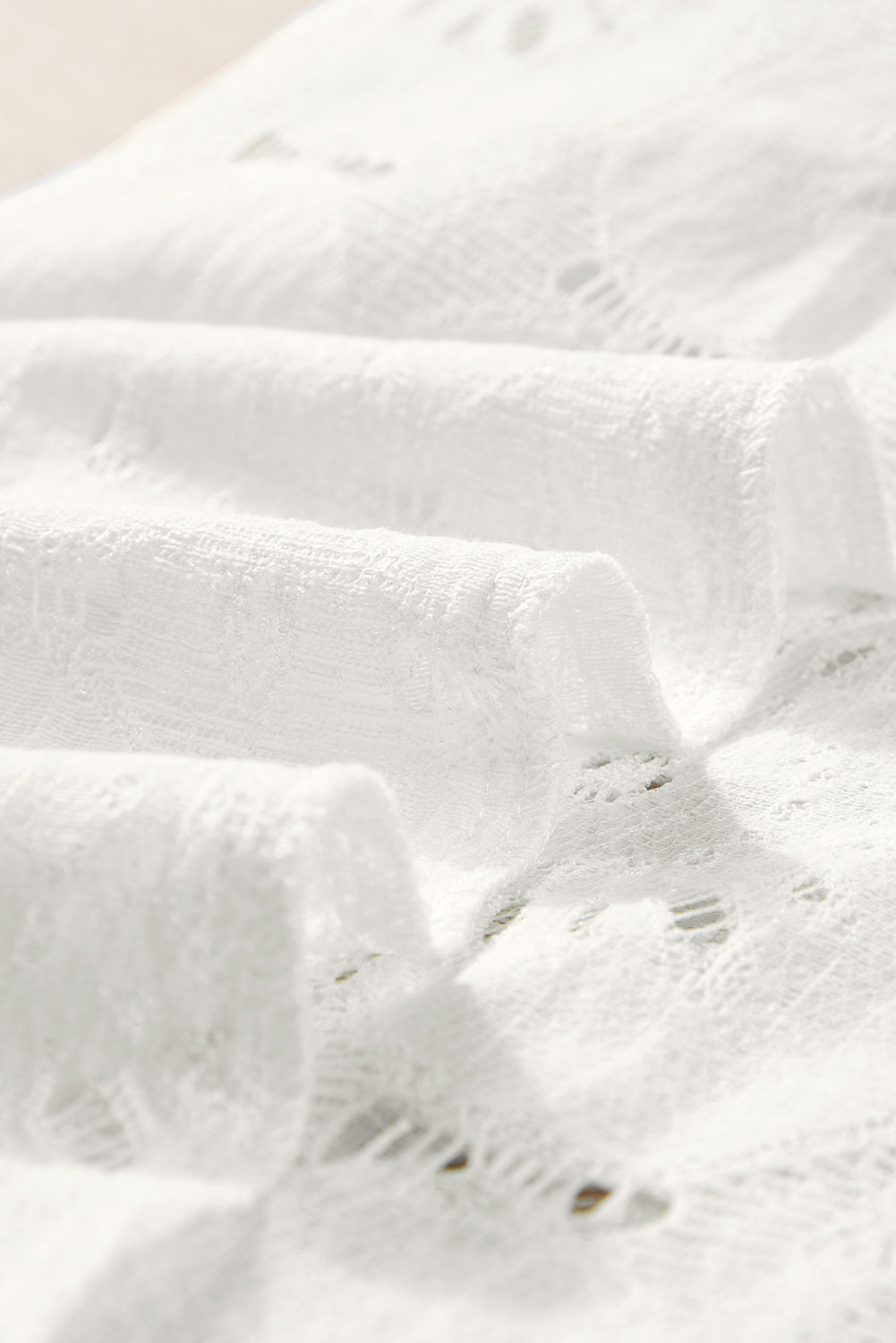 Black Flower Eyelet Jacquard Keyhole Flounce Sleeve Top