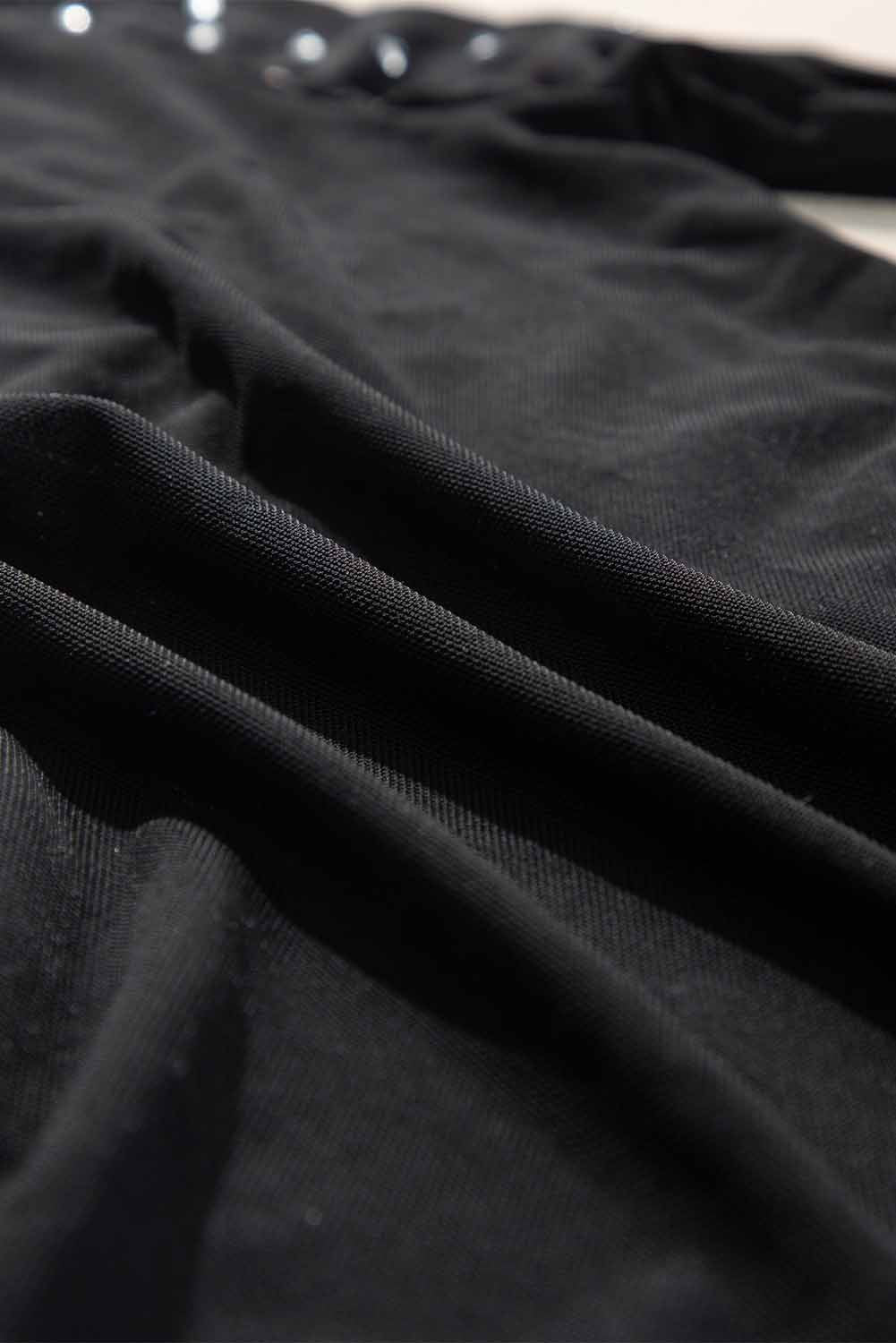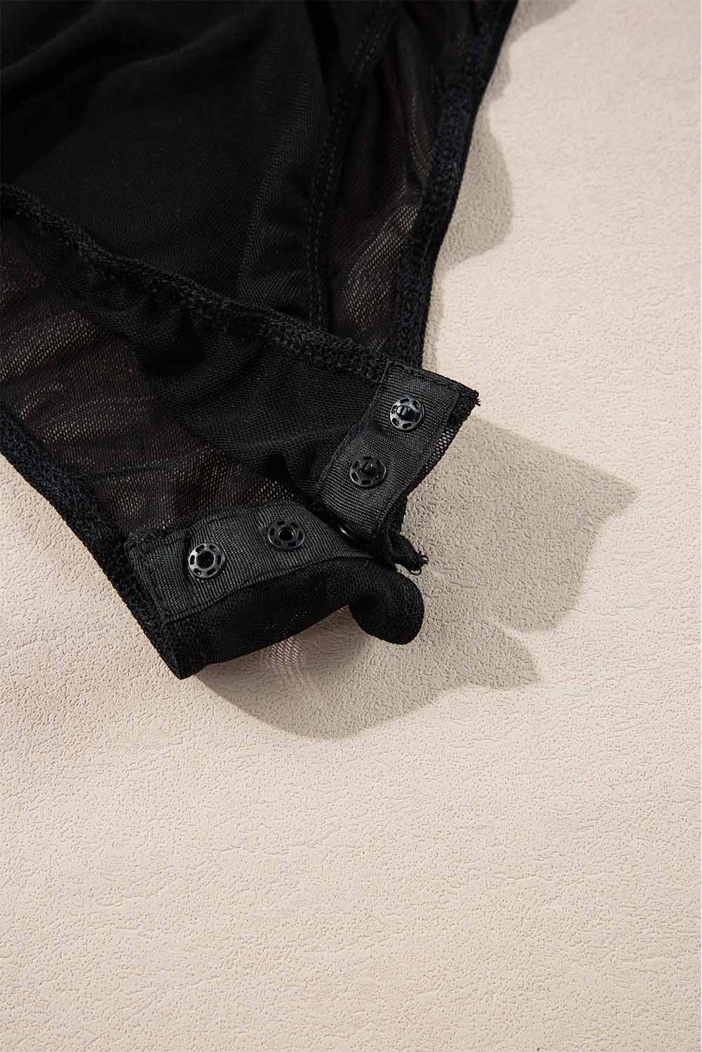 Black Rhinestone Sheer Mesh Long Sleeve Bodysuit