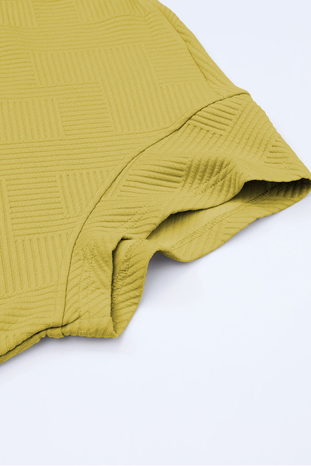- The loose fit of the t-shirt provides a relaxed and effortless look, while the textured fabric adds a unique touch and visual interest.