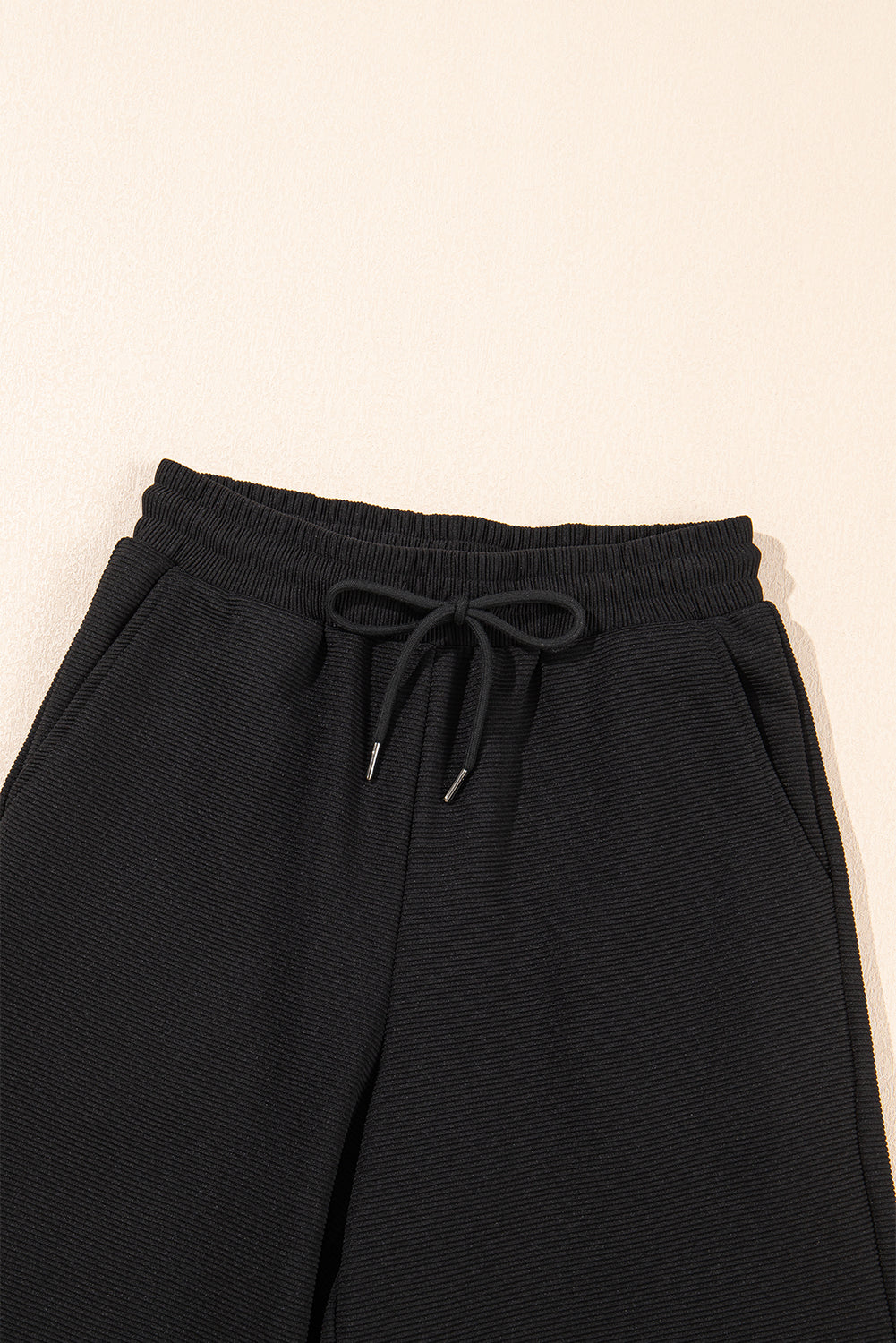 Black Textured Ruffled Sleeve Zipped Top and Wide Leg Pants Set
