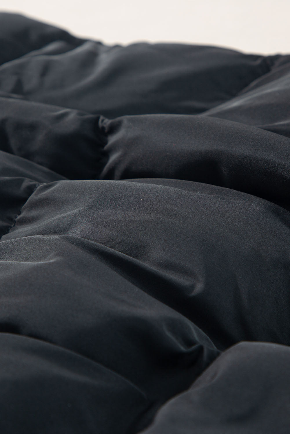 Black Windproof Longline Full Zipper Puffer Vest with Pockets