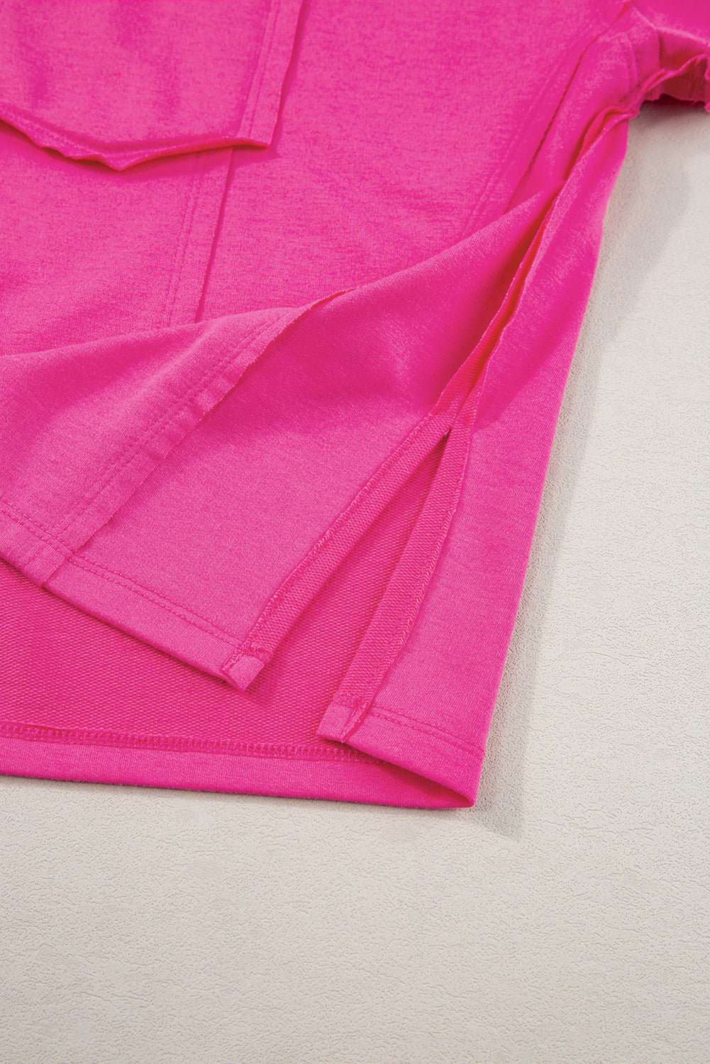Blue Patched Pocket Exposed Seam Oversize T-shirt