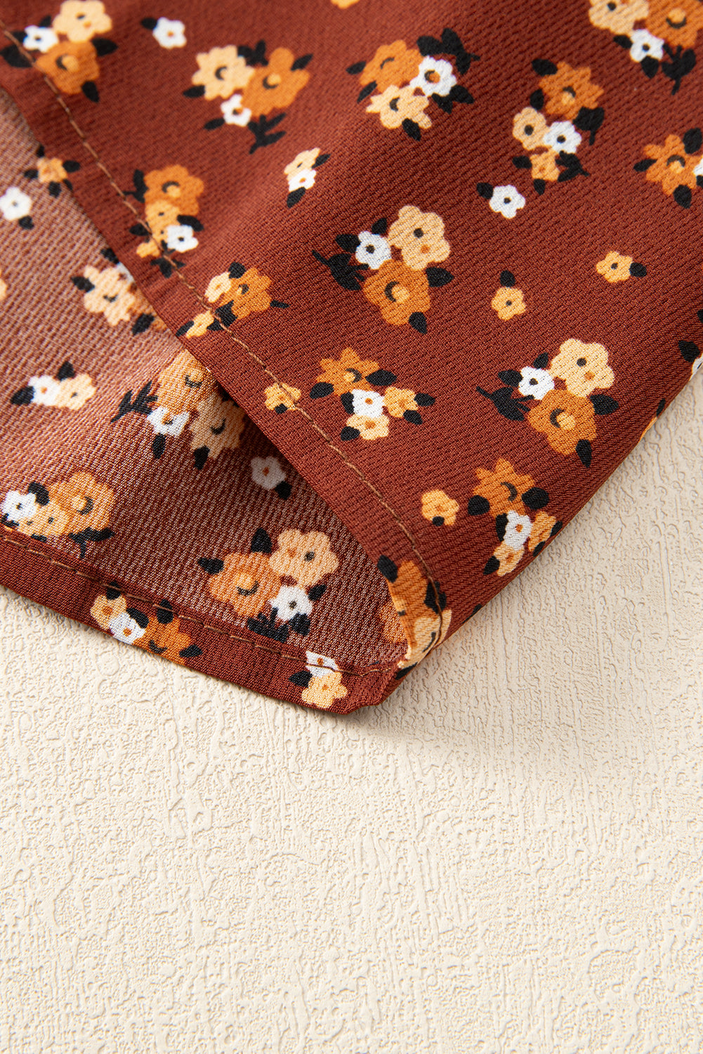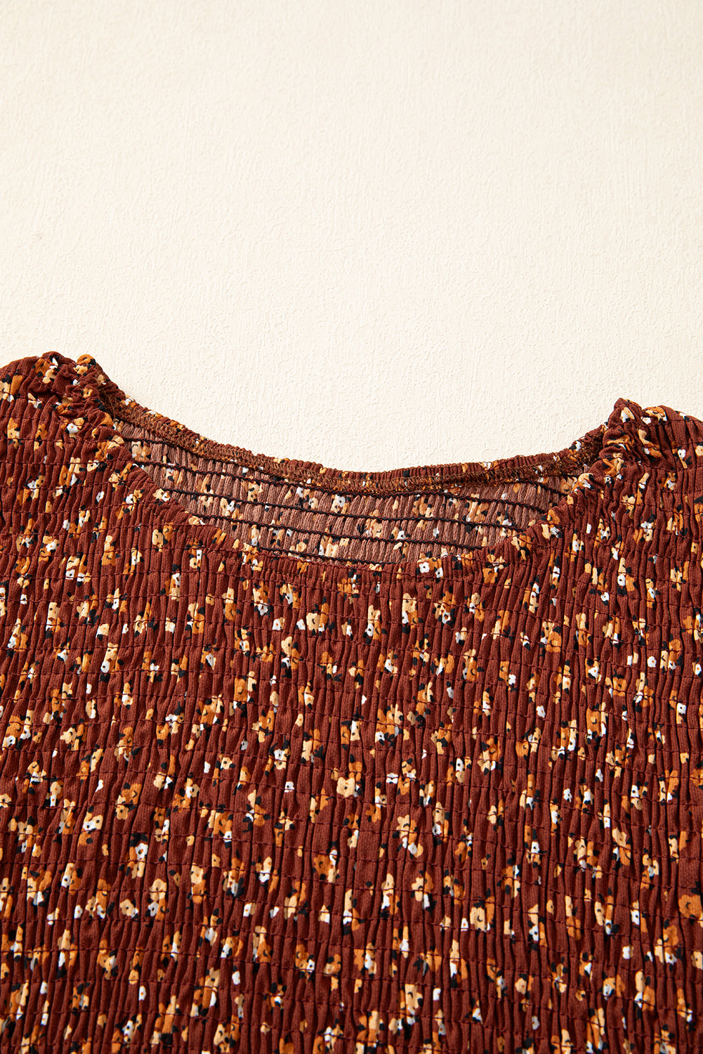Boho Floral Smocked Bust Ruffled Peplum Blouse