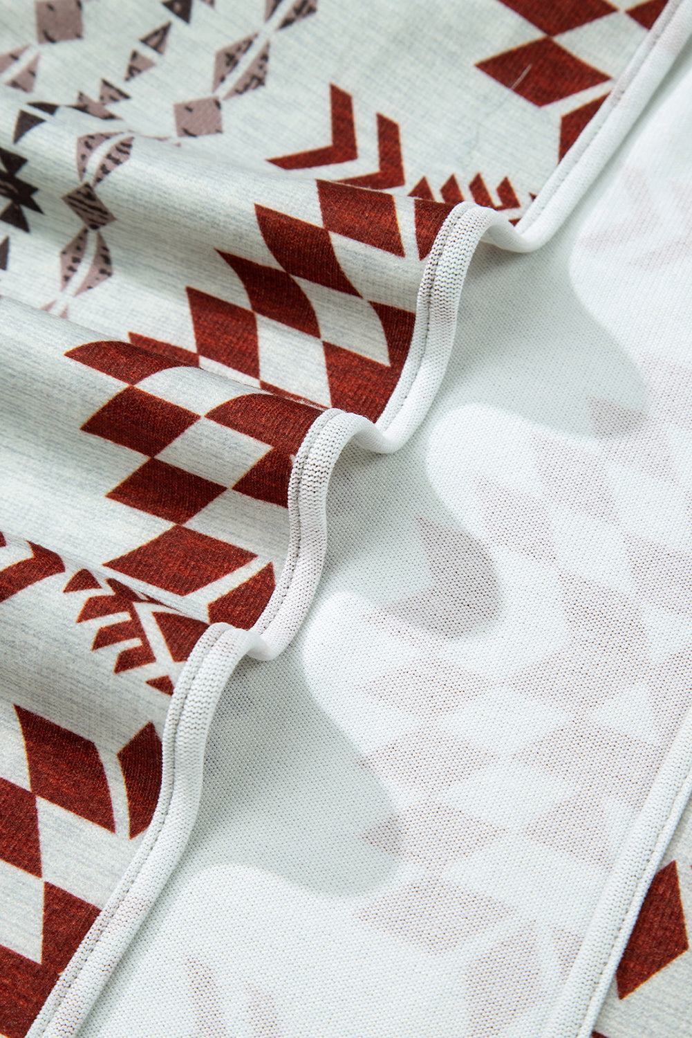 The cardigan shows a captivating Western-inspired Aztec print, bringing a unique and cultural touch to your wardrobe.