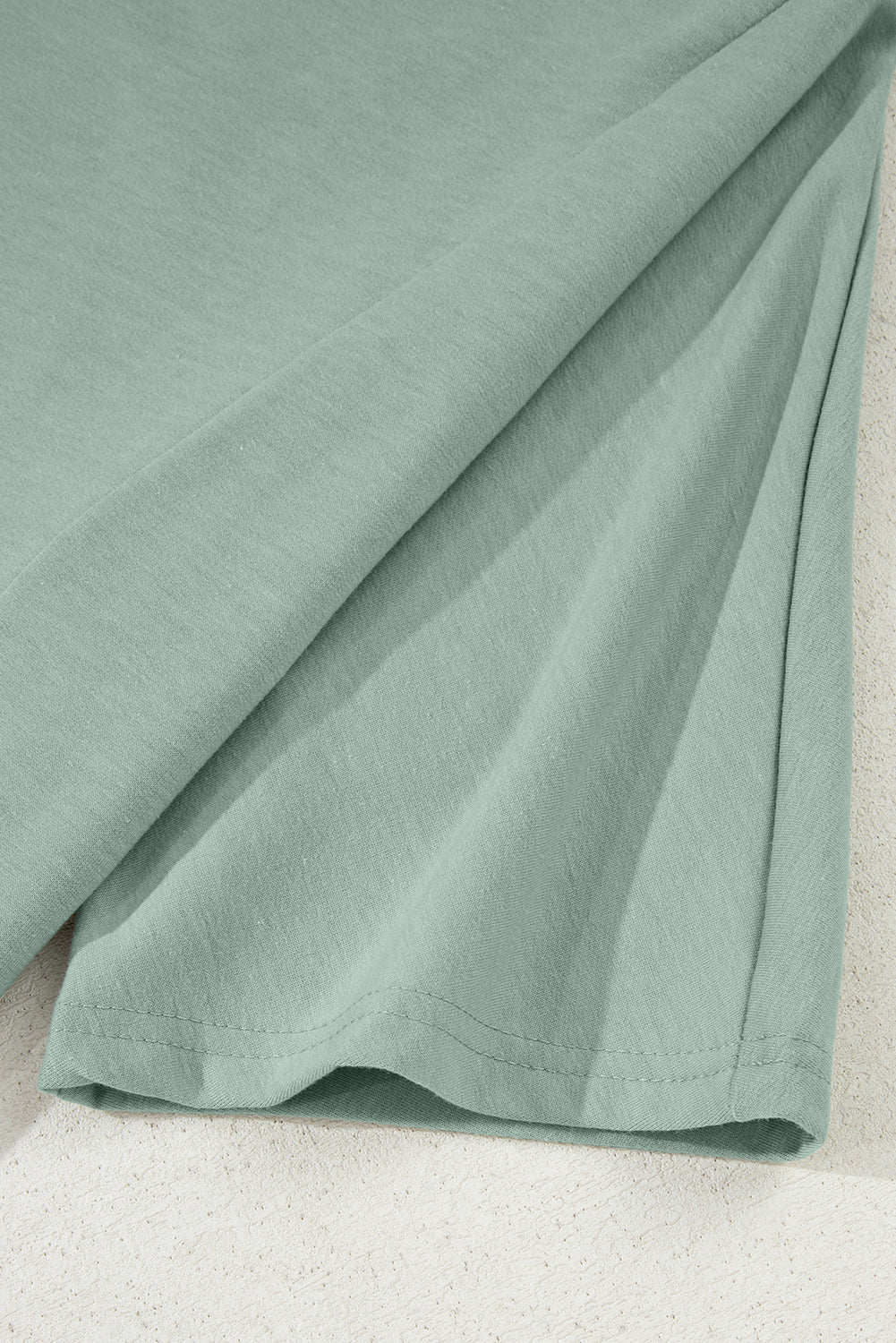 Clearly Aqua Floral Patched Half Sleeve Tunic Top
