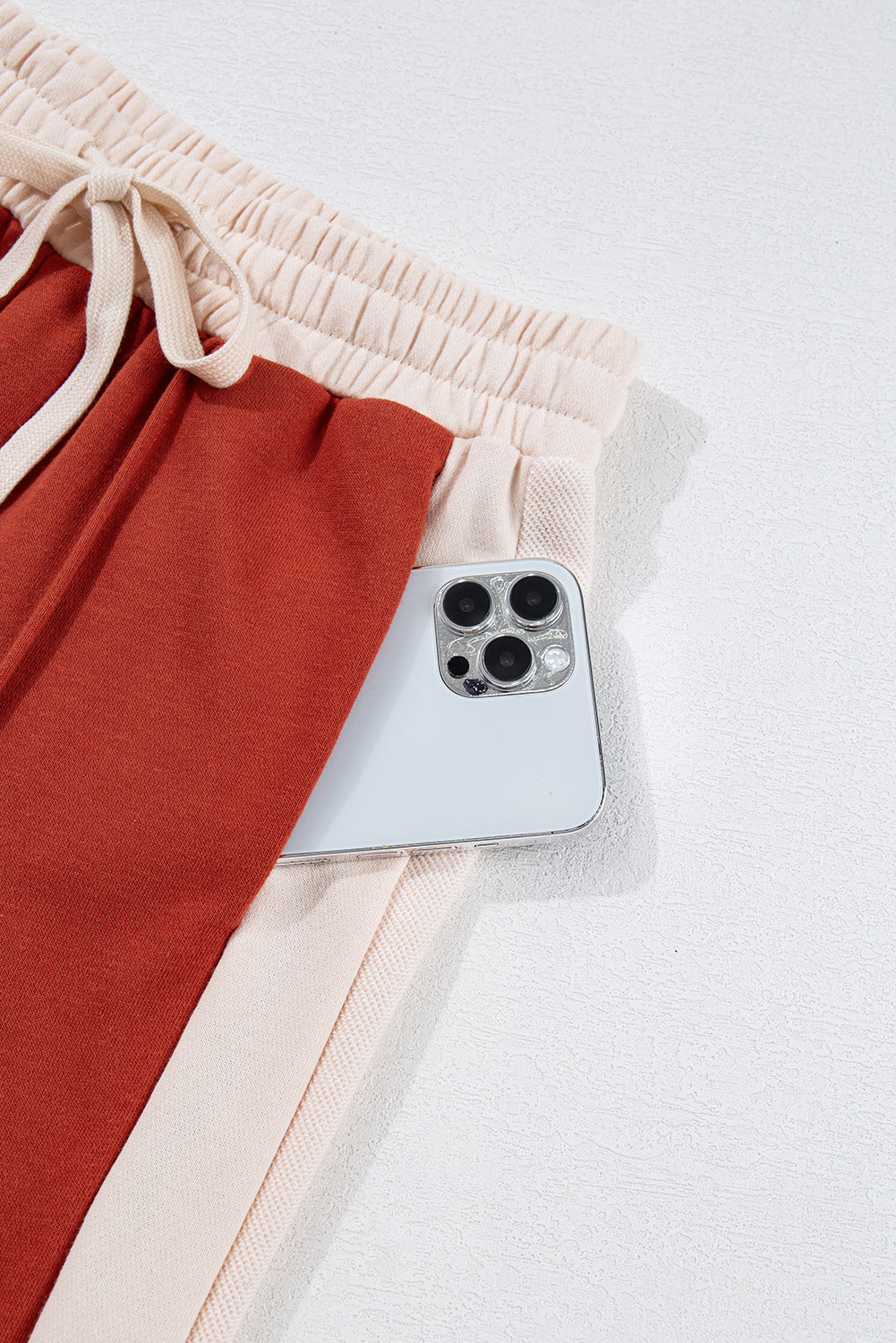 Flamingo Color Block Drawstring High Waist Wide Leg Pants