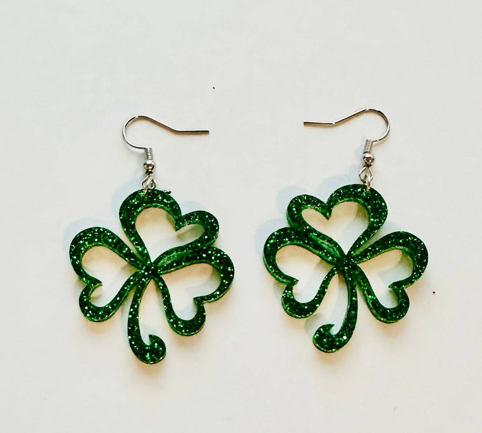Celebrate St. Patrick's Day with these super cute acrylic earrings! They hang 1.75 inches.