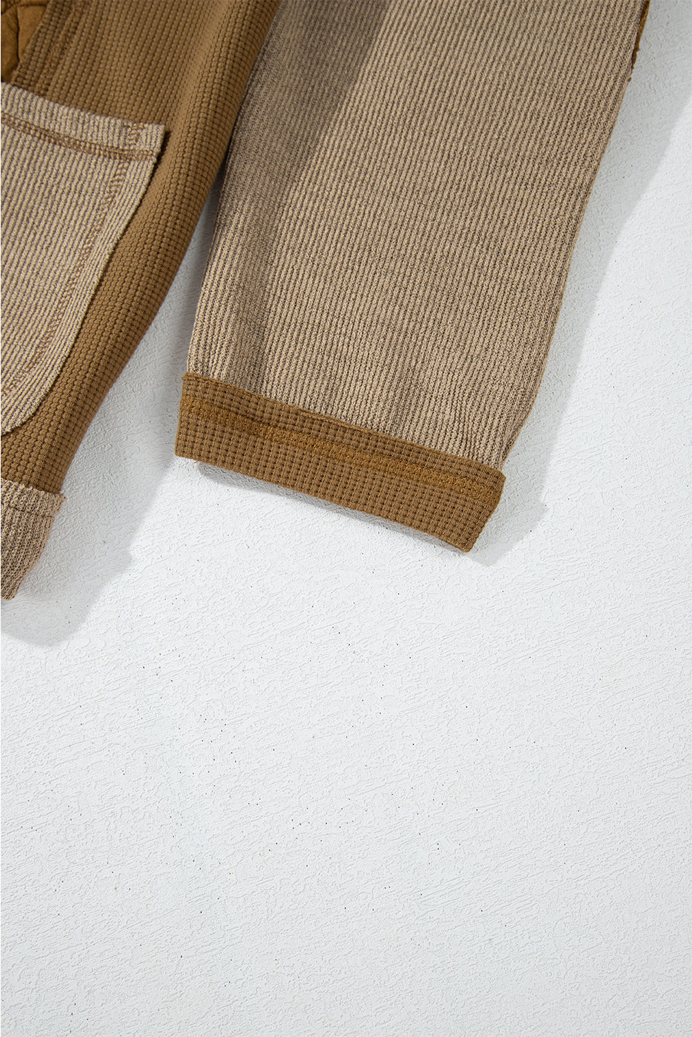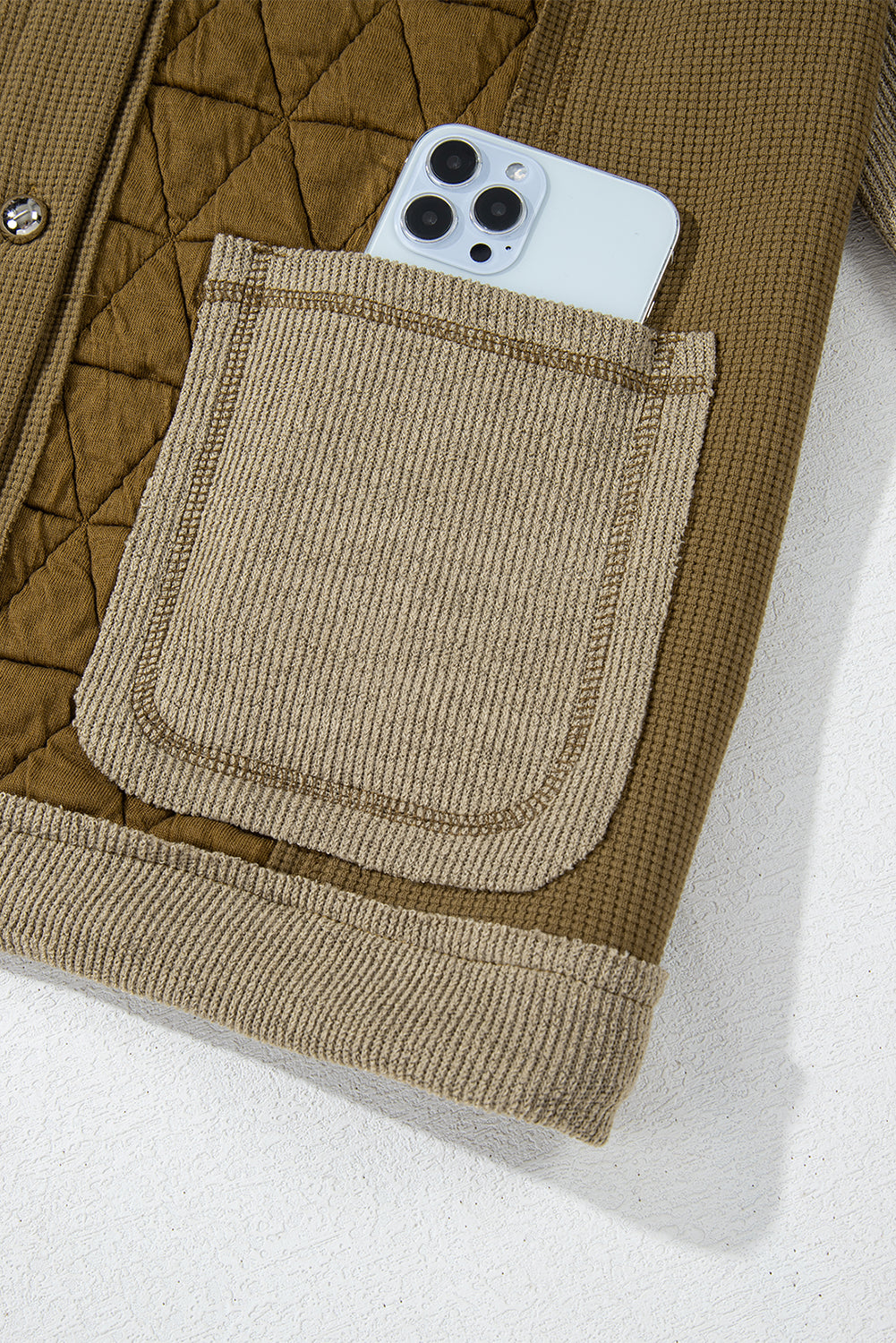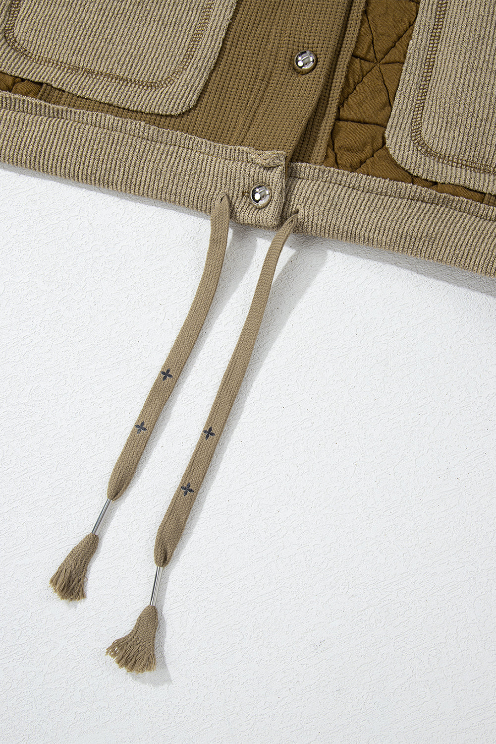 Light Blue Quilted Textured Patchwork Loose Fit Hooded Jacket