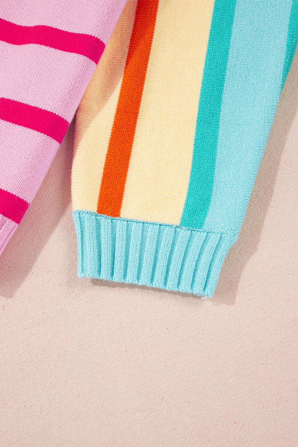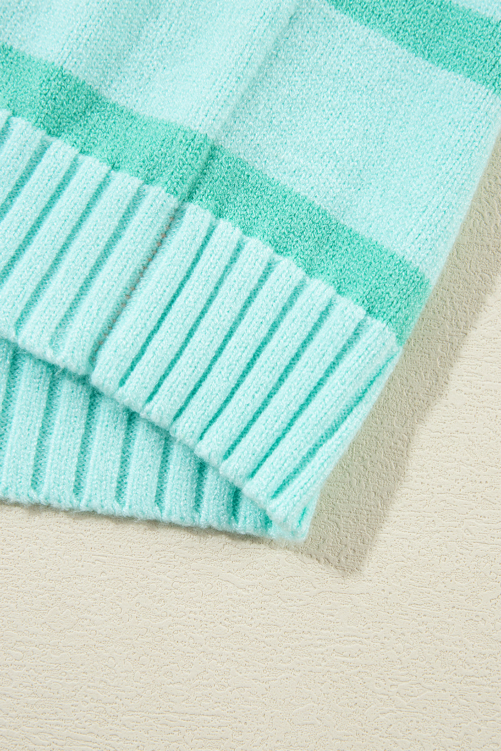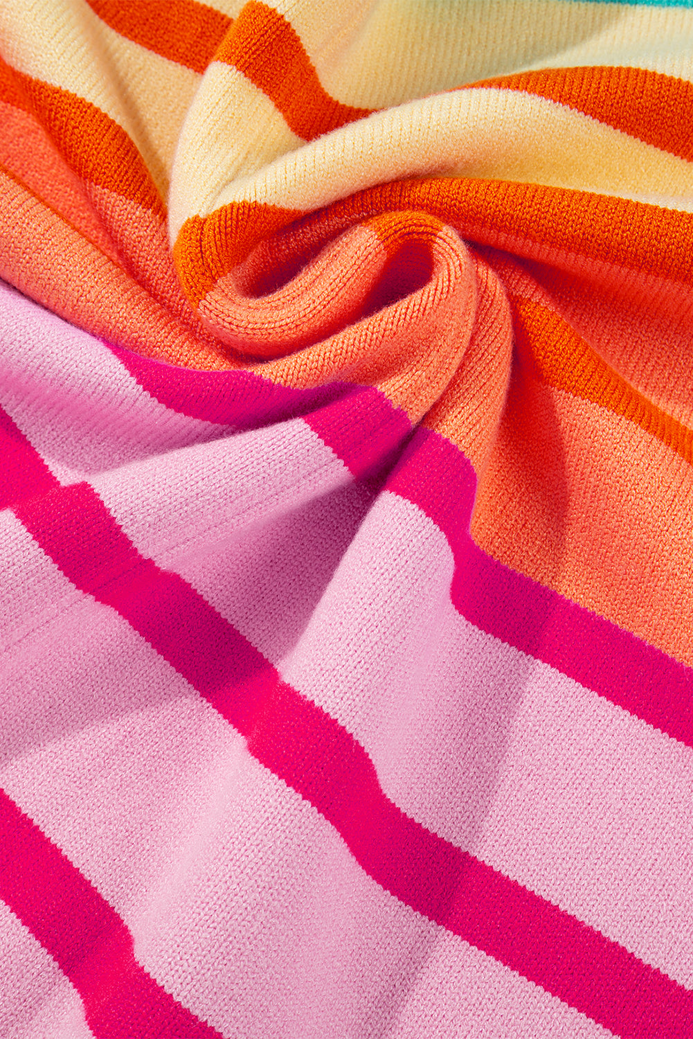 Multicolour Gradient Striped Ribbed Edge Loose Sweater