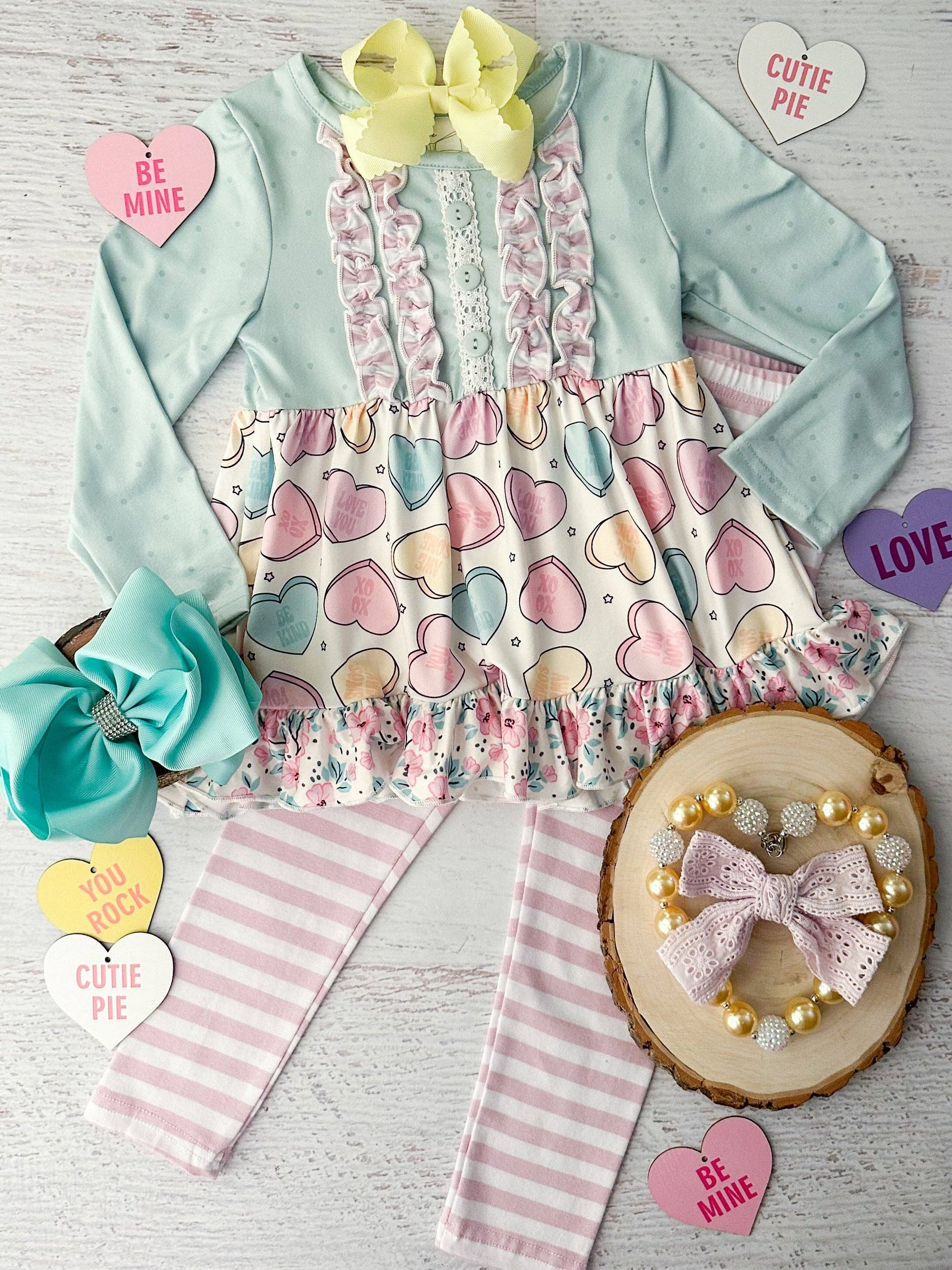 Get your heart racing with our Pastel Hearts Striped Leggings Set. These leggings feature a playful mix of pastel hearts and stripes that will add a unique pop of color to any outfit. With a comfortable fit and trendy design, these leggings are a must-have for any fashion-forward individual.