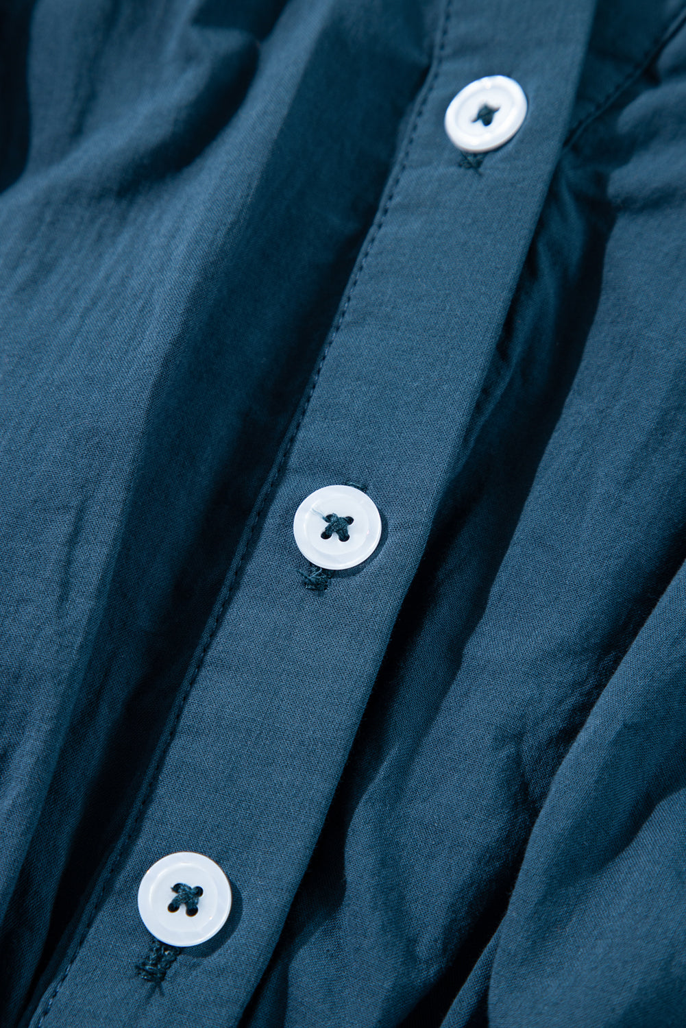 Prussian Blue 3/4 Sleeve Shirred High Waist Buttoned Mini Dress