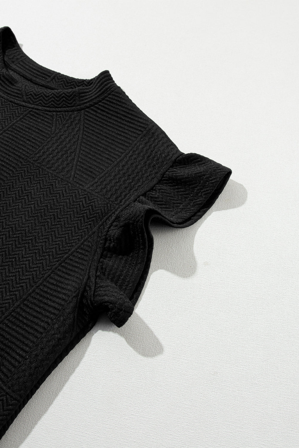 Skobeloff Textured Ruffle Split Top and Drawstring Shorts