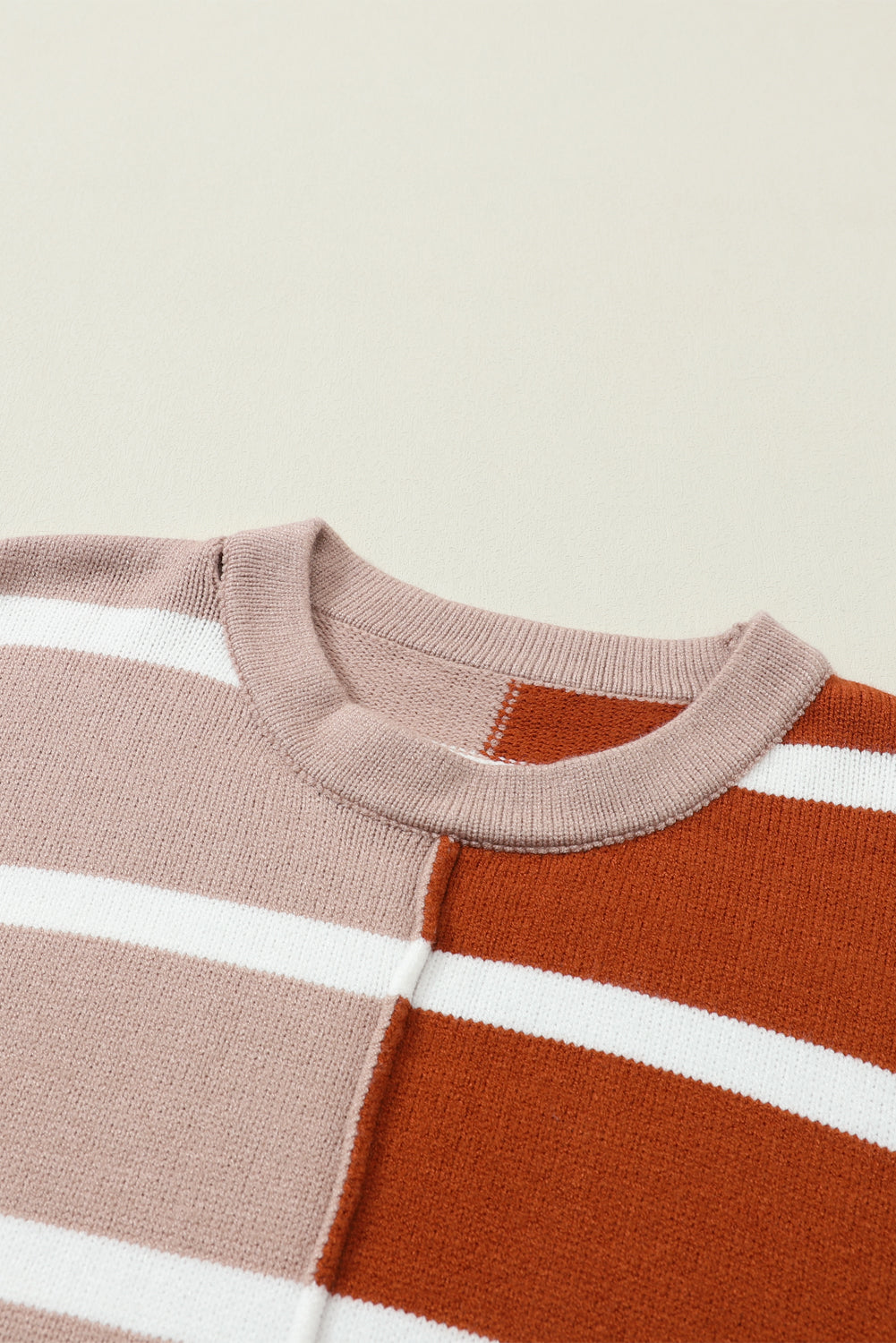 Stripe Oversized Contrast Printed Dropped Shoulder Top
