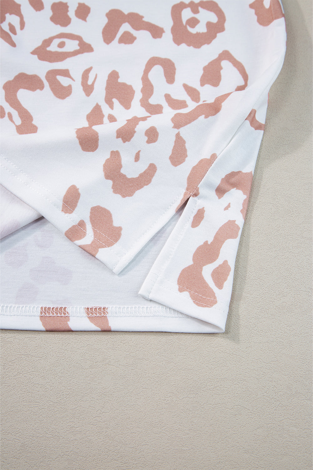 White Plus Size Leopard Print V Neck Short Sleeve Top